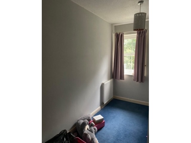 Having double glazed window, wall mounted radiator and blue fitted carpet.