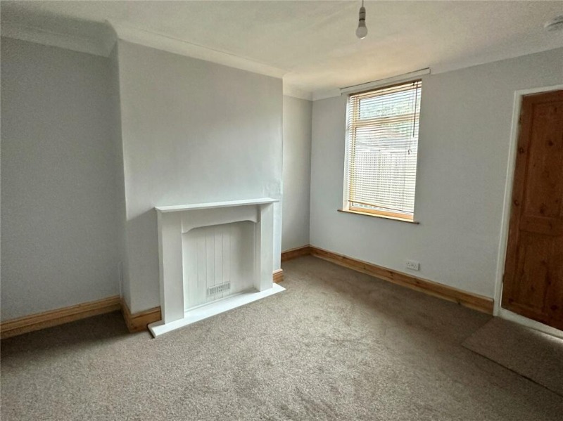 Having double glazed window, wall mounted radiator, decorative white fire surround and brown fitted carpet.